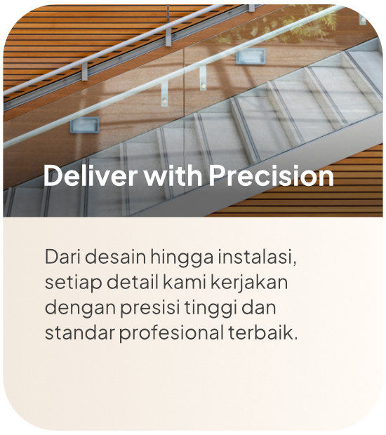 Dari perencanaan hingga instalasi, seluruh proses ditangani langsung oleh tim internal untuk memastikan kualitas dan ketepatan waktu.